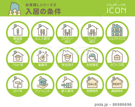 お家探しシリーズ3 入居の条件 カラーラインアイコンのセット
