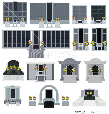 永代供養墓のイラスト素材のセット ベクター