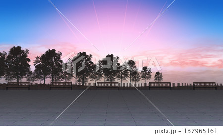 静寂や孤独を感じる夕暮れ時の公園 人物や文字を入れるシンプル背景素材