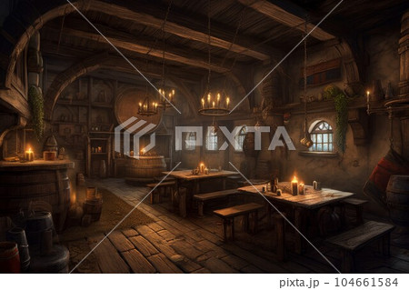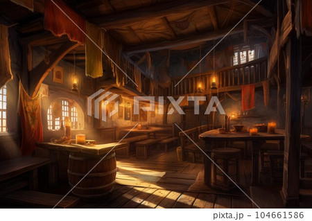 Wood medieval tavern. Game history. Generate Ai