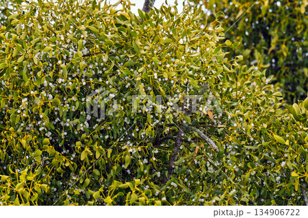 Close up View of Mistletoe Berries Growing in a Garden in the Afternoon Light
