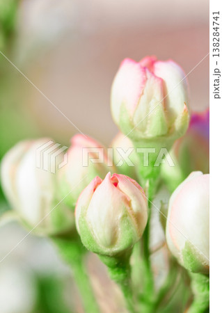 Tender pink and white flower buds, softly blurred background