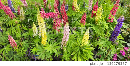 Colorful Russel Lupines in a garden