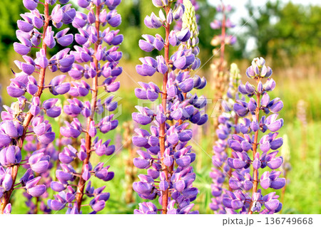 Purple lupine flowers on a sunny day, natural photo
