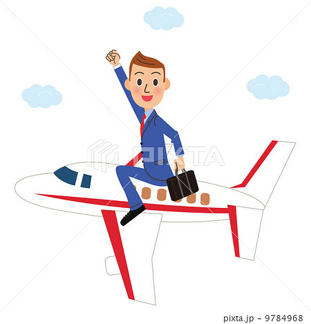 飛行機に乗って出張するサラリーマン