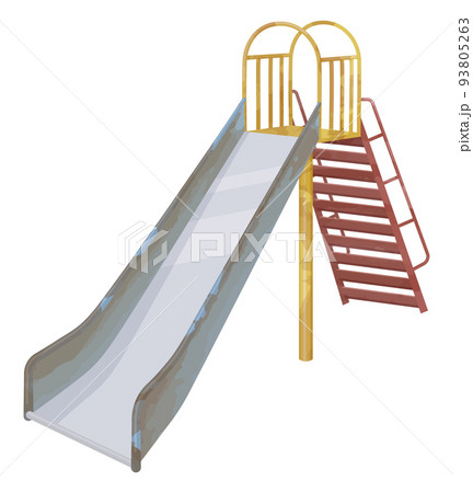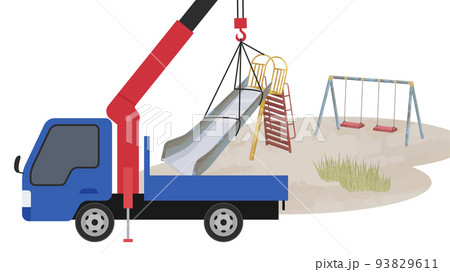 錆びた滑り台ををクレーン車で撤去するイラスト