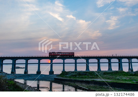 海に沈む道 長部田海床路 夕景