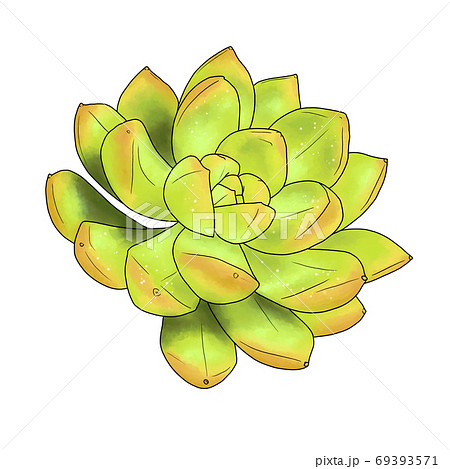 鮮やかな緑色の多肉植物の金の成る木 線画なし