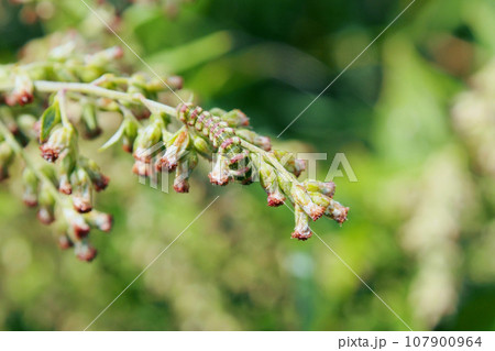 ヨモギの花に擬態するイモムシ・ハイイロセダカモクメ