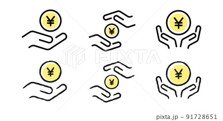 シンプルな手描きのお金アイコンセット(イエロー)