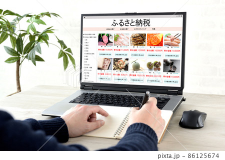 ふるさと納税のオンライン申請を行う男性の手元
