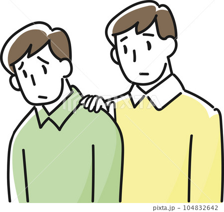 悩んでいる男性と寄り添う男性の上半身のイラスト