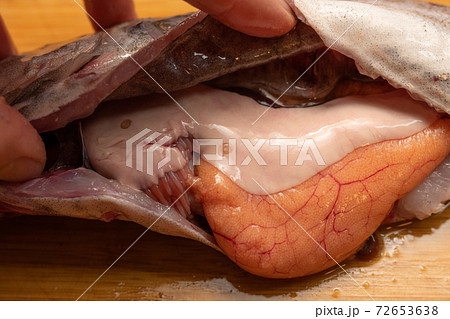 ホッケの内臓に寄生すりアニサキス