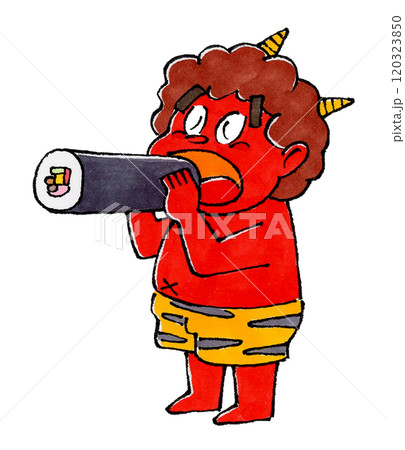 恵方巻を食べる赤鬼
