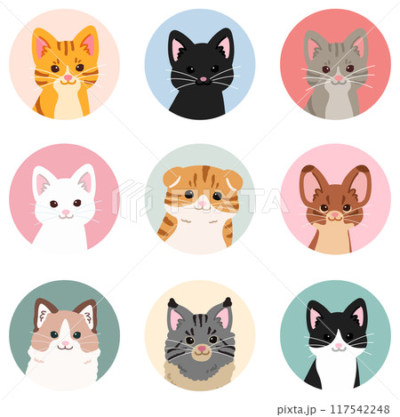 シンプルで可愛い猫の丸いアイコンイラストセット