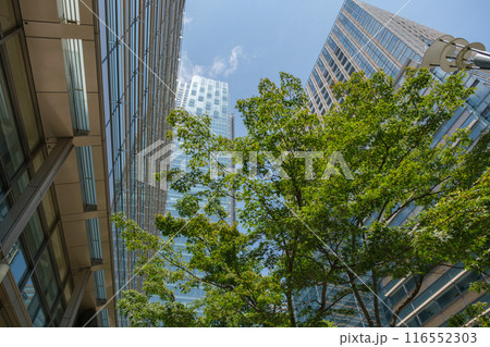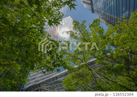 東京ミッドタウン六本木 高層ビル群と青紅葉の広場 東京都港区