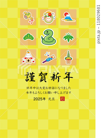 2025年の干支 巳(へび)と富士山の初日の出の白背景の年賀状背景素材