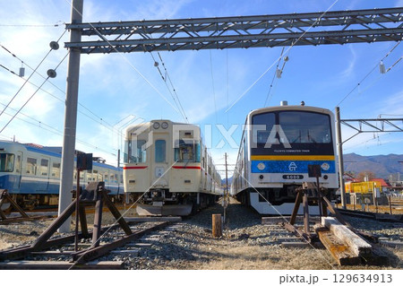 富士山麓鉄道(富士急行線)の風景 河口湖駅車両基地(富士急1000系と富士急6000系)