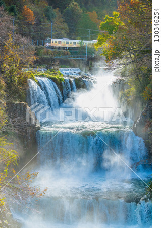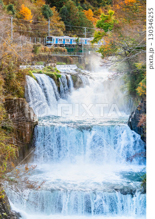 富士急行 田原の滝を通過する電車