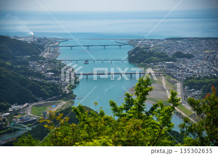 尾子山山頂から熊野川河口を望む 【三重県南牟婁郡紀宝町】