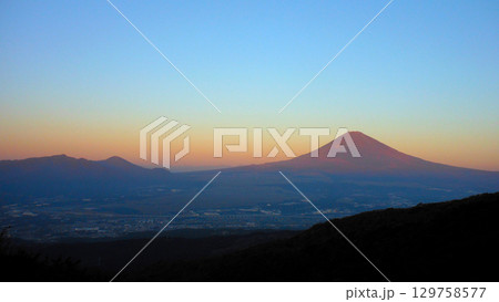 富士見ヶ丘公園から眺めた 早朝の富士山