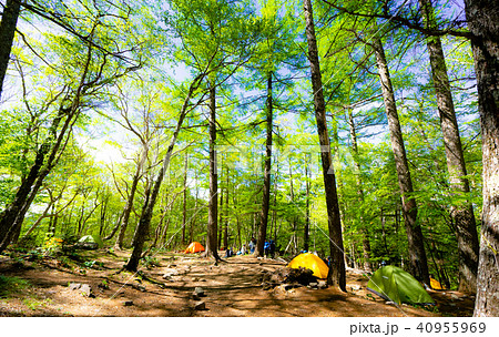 山梨県の瑞牆山の富士見平小屋前のテント葉