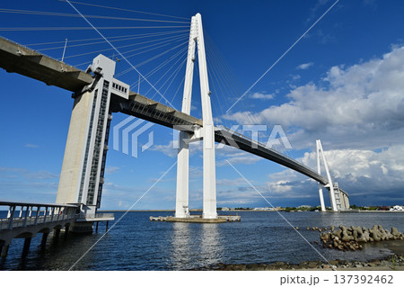 【射水市 南水路緑地公園から望む「新湊大橋」全景】