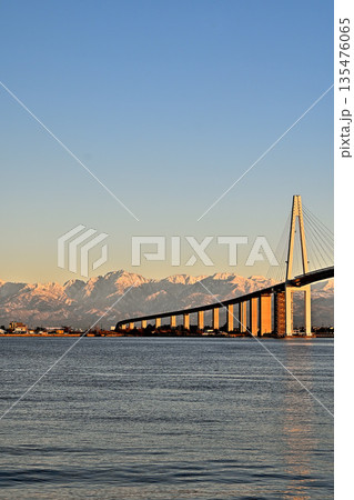 海王丸パークから見た冬の立山連峰 新湊大橋