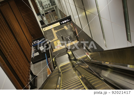 JR富山駅(駅ビル 駅ホーム 青空 日陰)