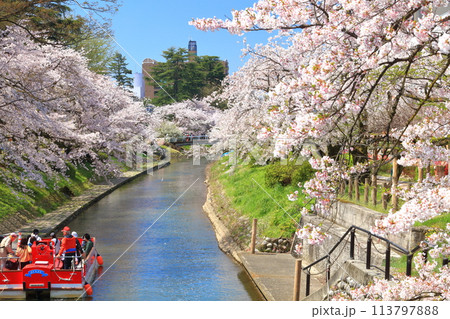 【富山県】松川べりと松川遊覧船と満開の桜