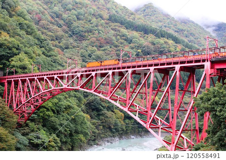 鉄橋を行くトロッコ電車 黒部峡谷鉄道 富山県