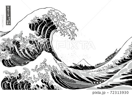 葛飾北斎イメージ神奈川沖浪裏題名入り白黒白バック