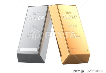 Gold and silver bullion bars. 3D rendering