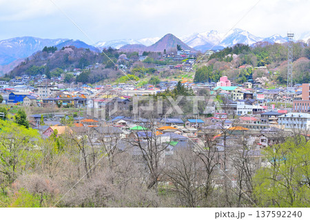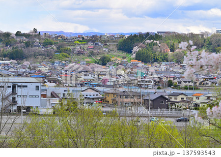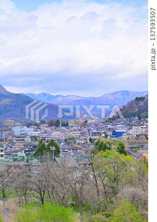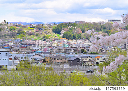桜の咲く頃 沼田市郊外の街並み 利根川地蔵橋付近の風景