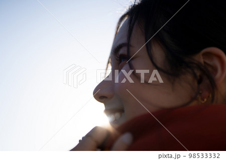 若い女性ポートレート(屋外、マフラー
