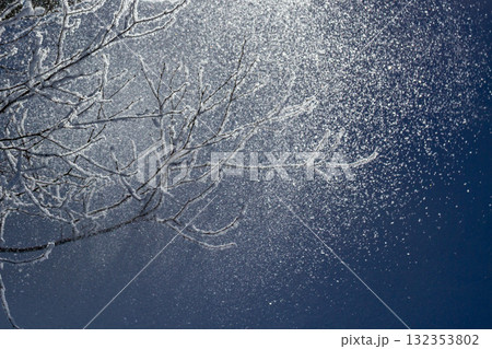 信州・長野の冬 霧氷に覆われた繊細な枝と静寂な雪景色の背景