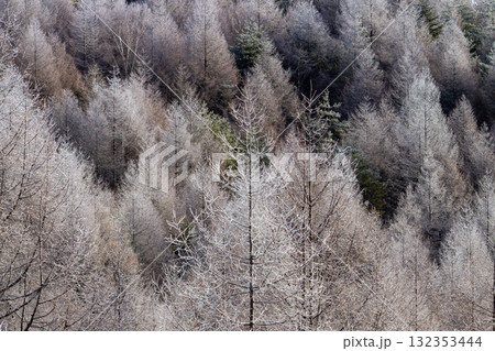 放射冷却が始まり、山の木々に霧氷が纏う瞬間【長野県】