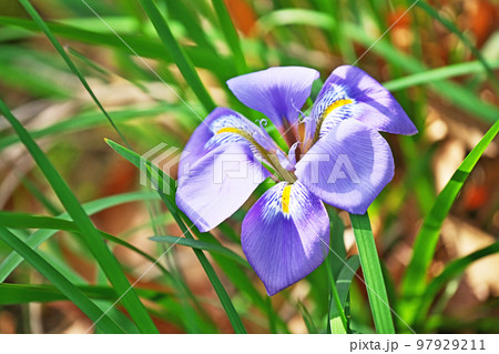 青色と白色の美しい冬のカンザキアヤメ(冬、十二月)