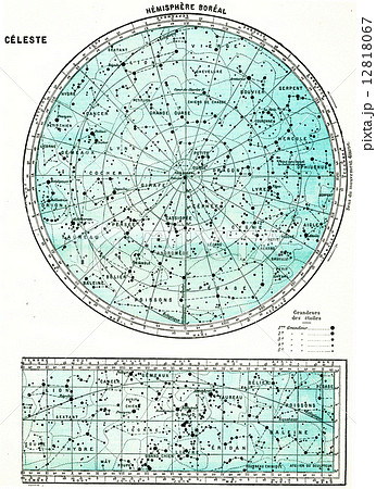 Hemisphere Boreal, vintage engraving.