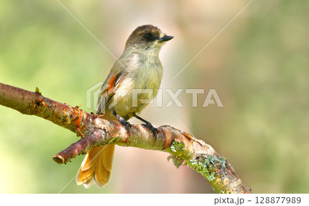 Siberian jay perched on a tree branch
