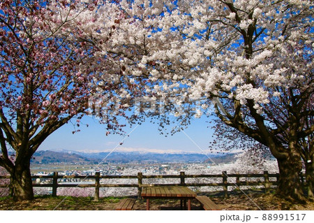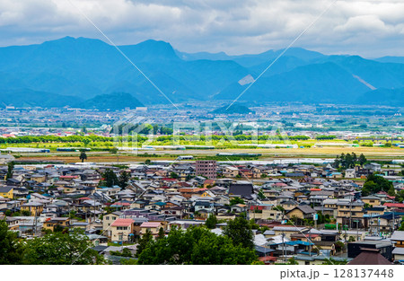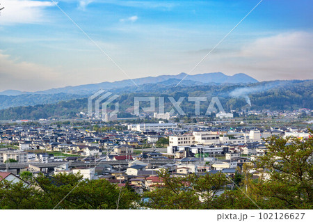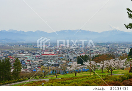 山形県 寒河江市 長岡山 寒河江町公園 展望広場からの街並みと蔵王連峰