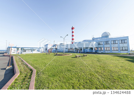 北海道稚内市 稚内市立ノシャップ寒流水族館と稚内市青少年科学館 背後の稚内灯台