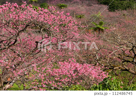 沖縄県国頭郡本部町 もとぶ八重岳桜まつり会場の満開の琉球寒緋桜