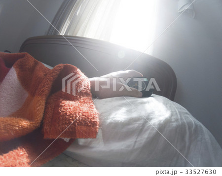 朝起きてベッドでボーっとする若い女性
