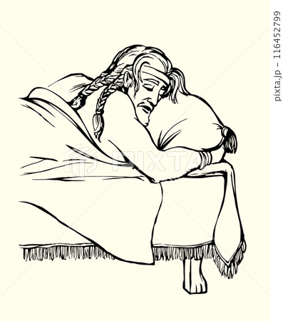Vector drawing. Man sleeping on the bed