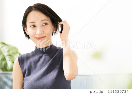 髪の毛のケアをする女性の写真