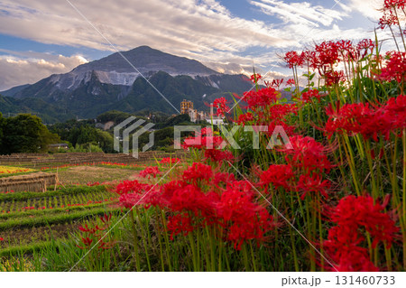 【埼玉県】秩父の寺坂棚田 武甲山を背に、畔の彼岸花と実った稲穂