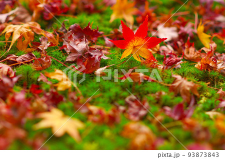 風情のある紅葉の落ち葉と苔の秋の景色。