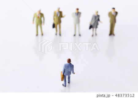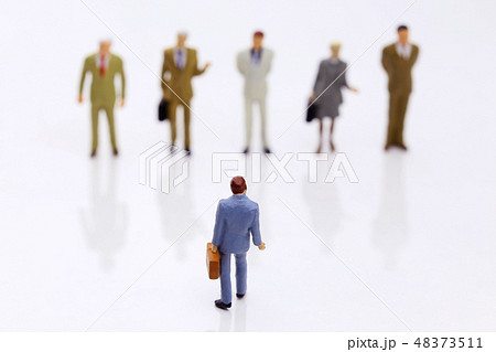 ビジネス 交渉のイメージ、向き合うビジネスマンのミニチュア