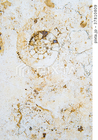 大理石の中に埋まっているアンモナイトの化石